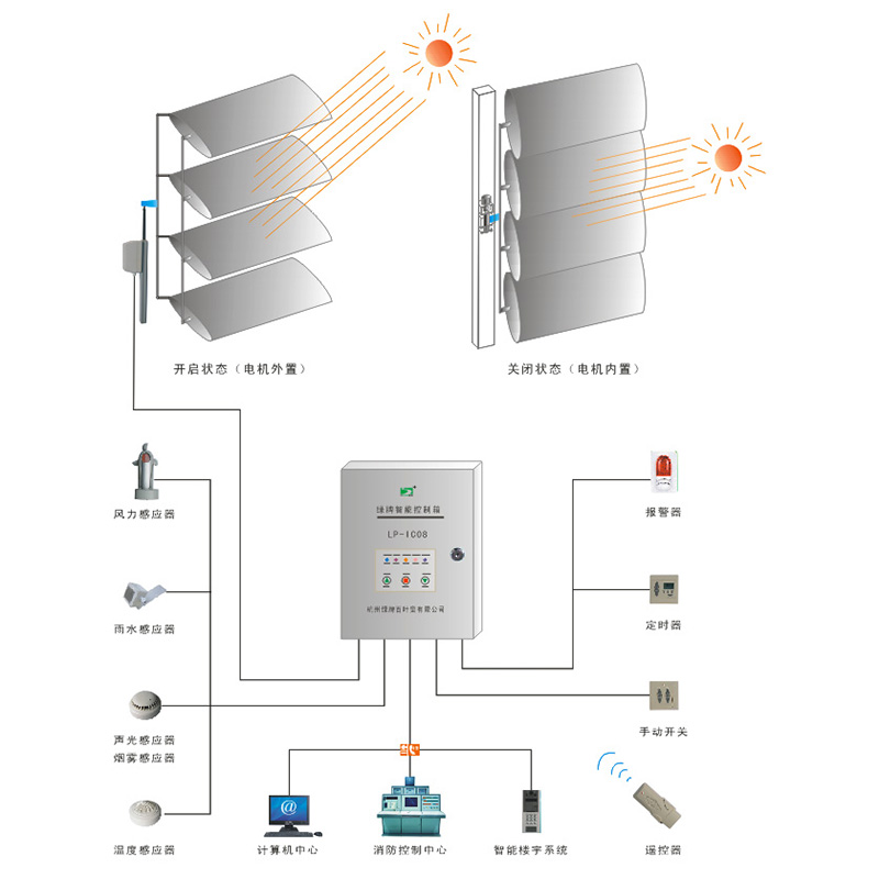 綠牌消防排煙控制系統(tǒng),可根據(jù)光線強弱、風(fēng)向變化、雨量大小、煙霧濃度、溫度高低等自動調(diào)節(jié)百葉角度,可實現(xiàn)通過網(wǎng)絡(luò)、電話多層次立體控制。 在不同季節(jié)、時間為您提供最佳的室內(nèi)工作、生活環(huán)境。